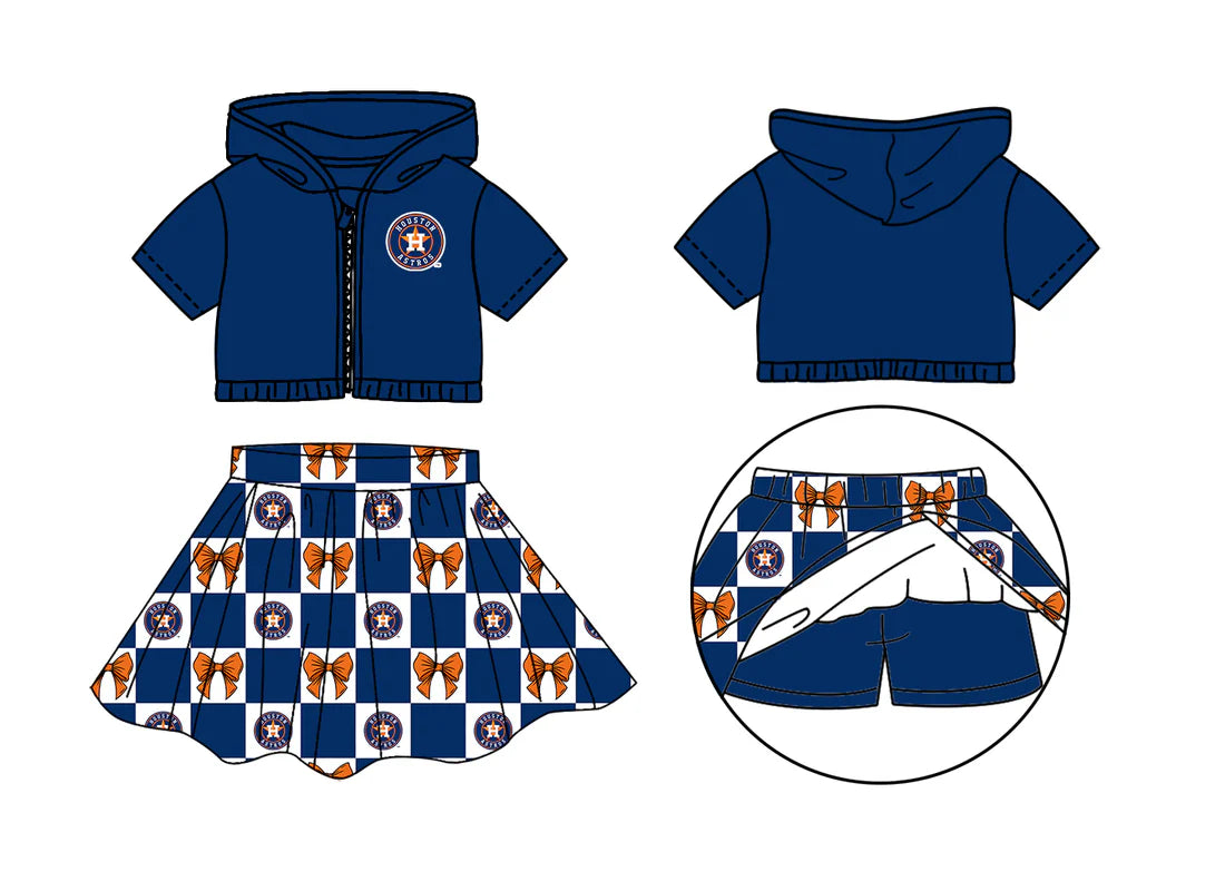 (Custom Design Preorder MOQ 5 Each Color) Team's Houston Astros Bows Plaid Print Girls Summer Clothes Sisters Matching Wear