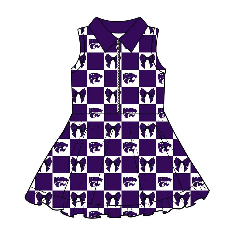 (Custom Design Preorder MOQ 5 Each Color) Team's Kansas Bows Plaid Print Girls Summer Clothes Sisters Matching Wear