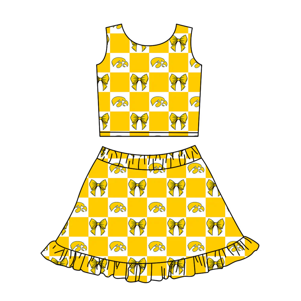 (Custom Design Preorder MOQ 5 Each Color) Team's Lowa Hawkeyes Bows Plaid Print Girls Summer Clothes Sisters Matching Wear