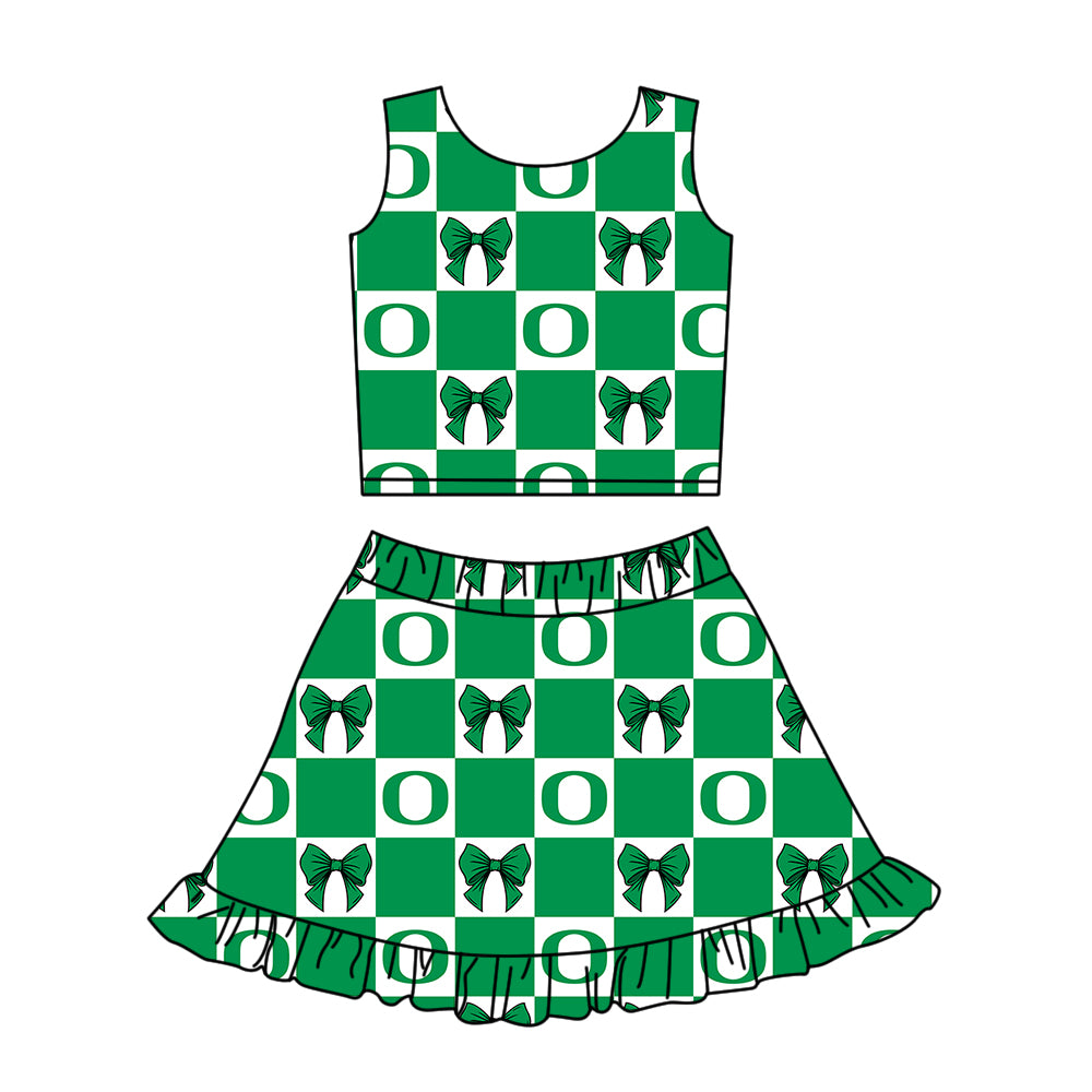 (Custom Design Preorder MOQ 5 Each Color) Team's Oregon Ducks Bows Plaid Print Girls Summer Clothes Sisters Matching Wear