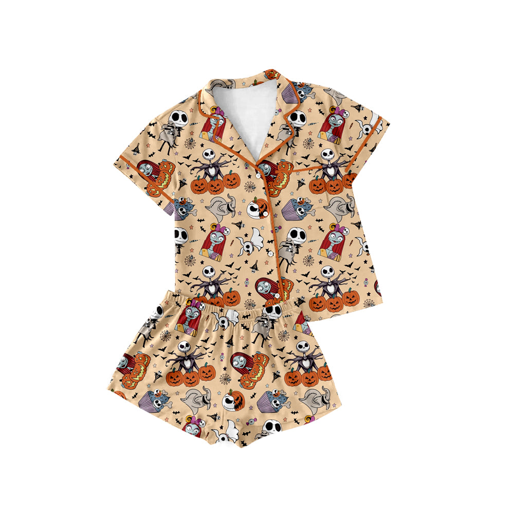 (Custom Design Preorder MOQ 5 Each Design) Movie Characters Pumpkin Print Halloween Buttons Pajamas Sets Mom and Me Matching Clothes