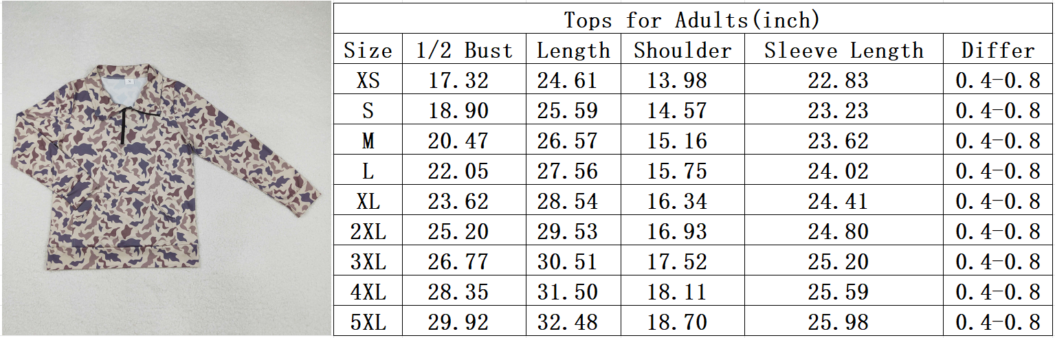 (Custom Design Preorder MOQ 5 Each Design) Team's GUSTINe Camo Print Pullover Zipper Top Mom and Me Matching Clothes