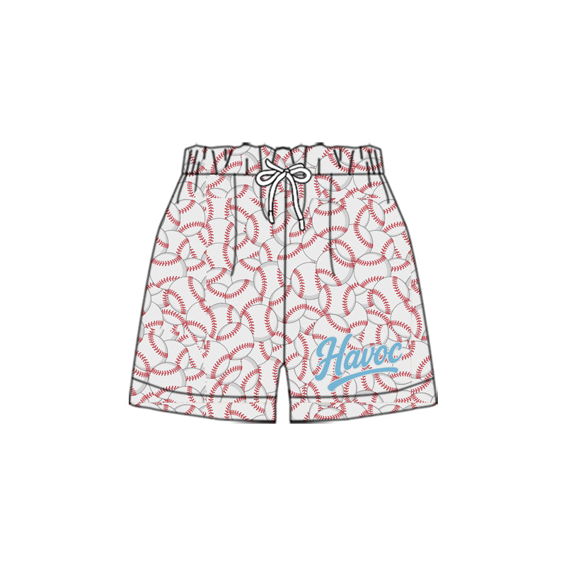 (Custom Design Preorder MOQ 5 Each Design) Team's Havoc Baseball Print Summer Bottom Drawstring Shorts Mom and Me Matching Clothes