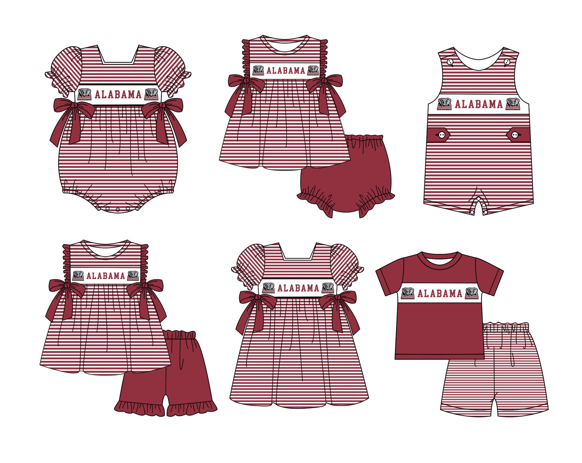 (Custom Design Preorder MOQ 5 Each Item) Team's Alabama Print Kids Summer Matching Clothes Sibling Wear