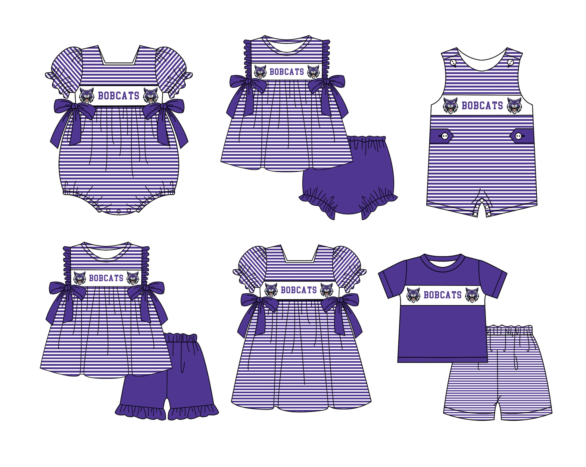 (Custom Design Preorder MOQ 5 Each Item) Team's BOBCATS Print Kids Summer Matching Clothes Sibling Wear