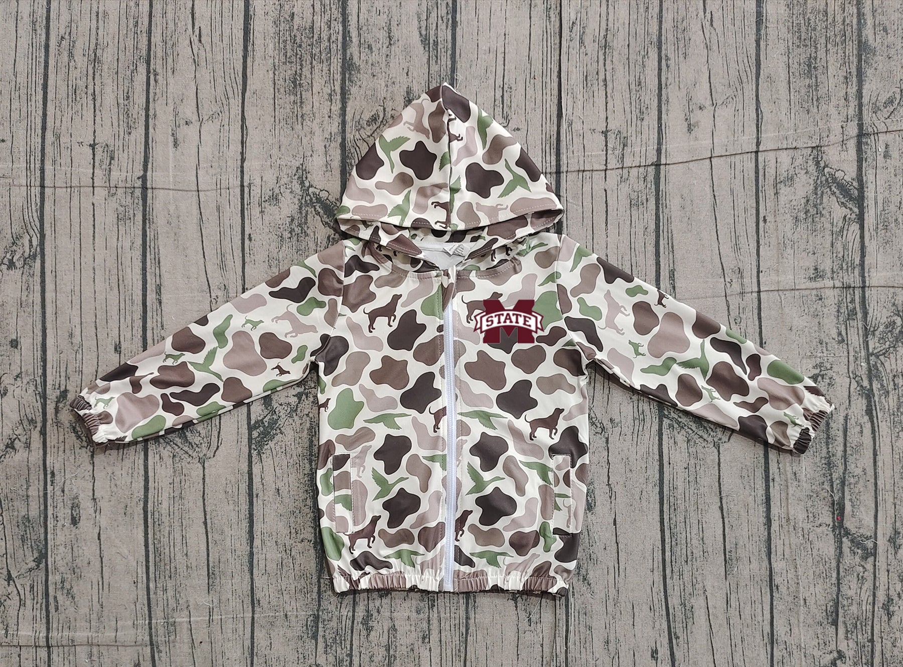 (Custom Design Preorder MOQ 5 Each Item) Team's Mississippi State Green Brown Camo Print Kids Fall Zipper Hoodie Jackets Top Mom and Me Matching Clothes