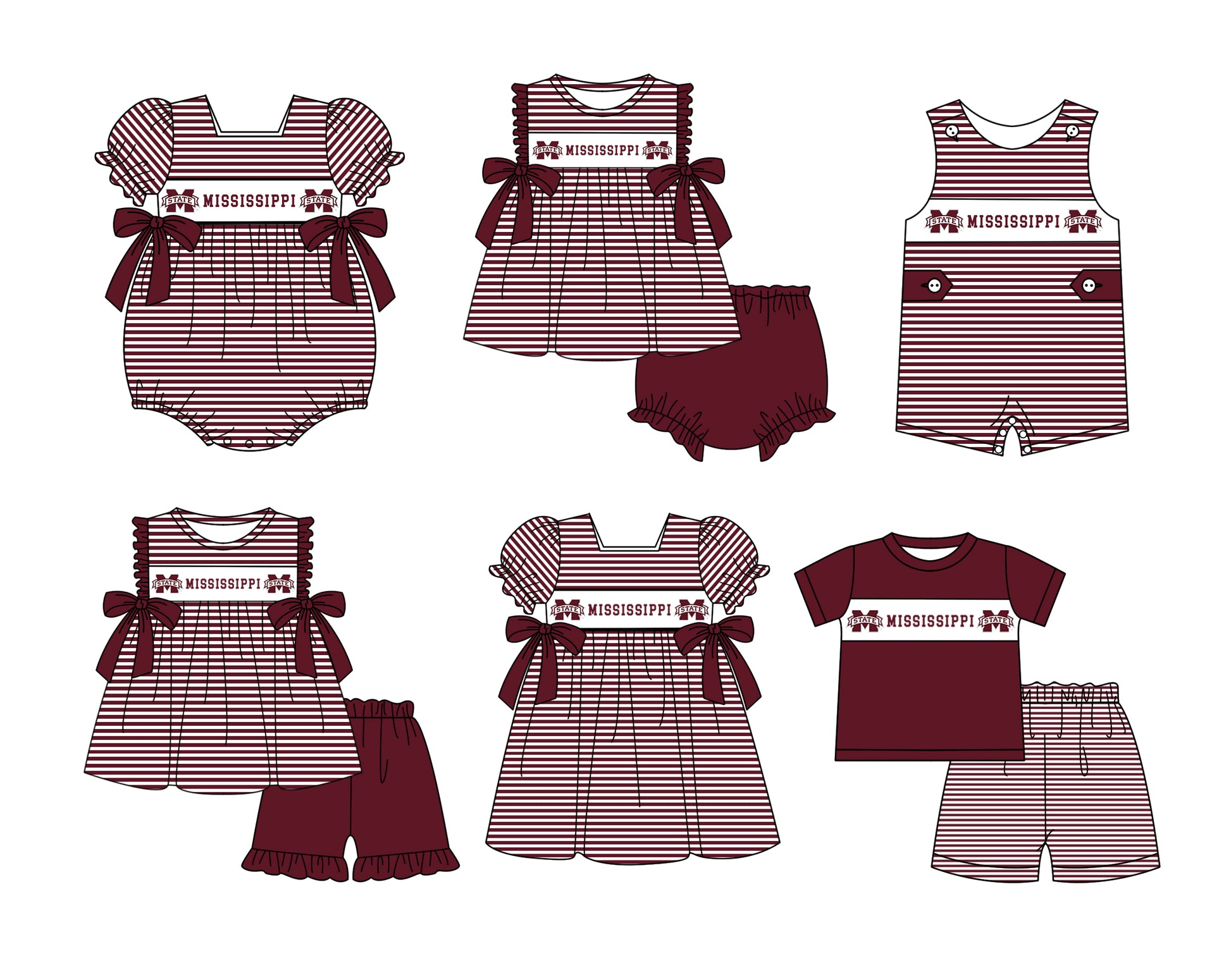 (Custom Design Preorder MOQ 5 Each Item) Team's Mississippi State Print Kids Summer Matching Clothes Sibling Wear