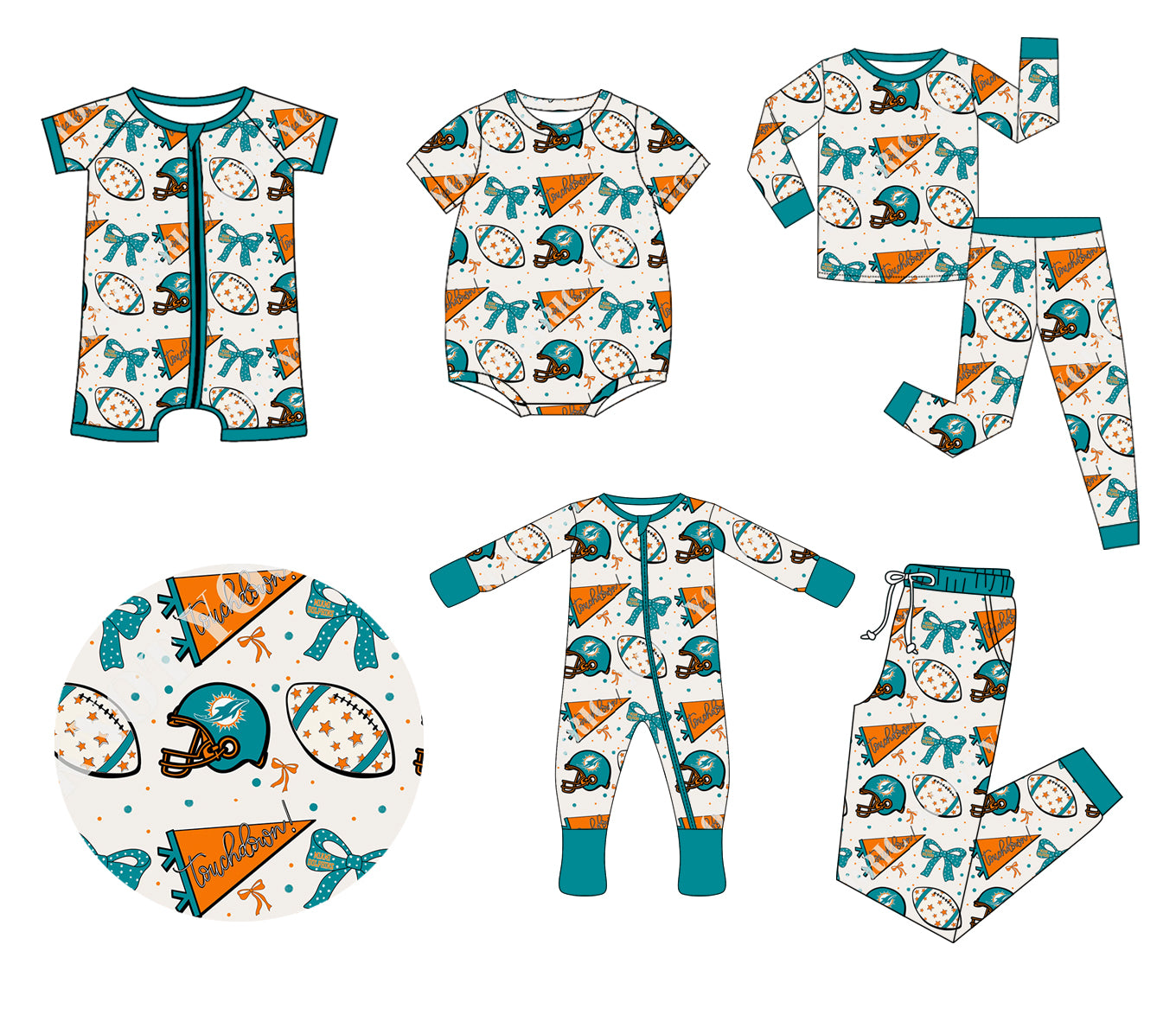 (Custom Design Preorder MOQ 20 Each Item)Team's Dolphins Print Family Bamboo Matching Clothes