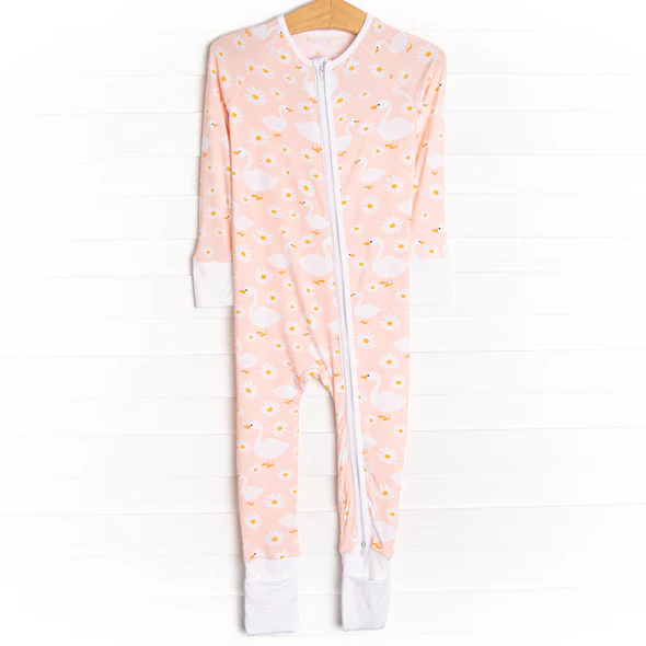 (Custom Design Preorder MOQ 20) Goose Daisy Print Baby Girls Fall Bamboo Sleeper Zipper Romper