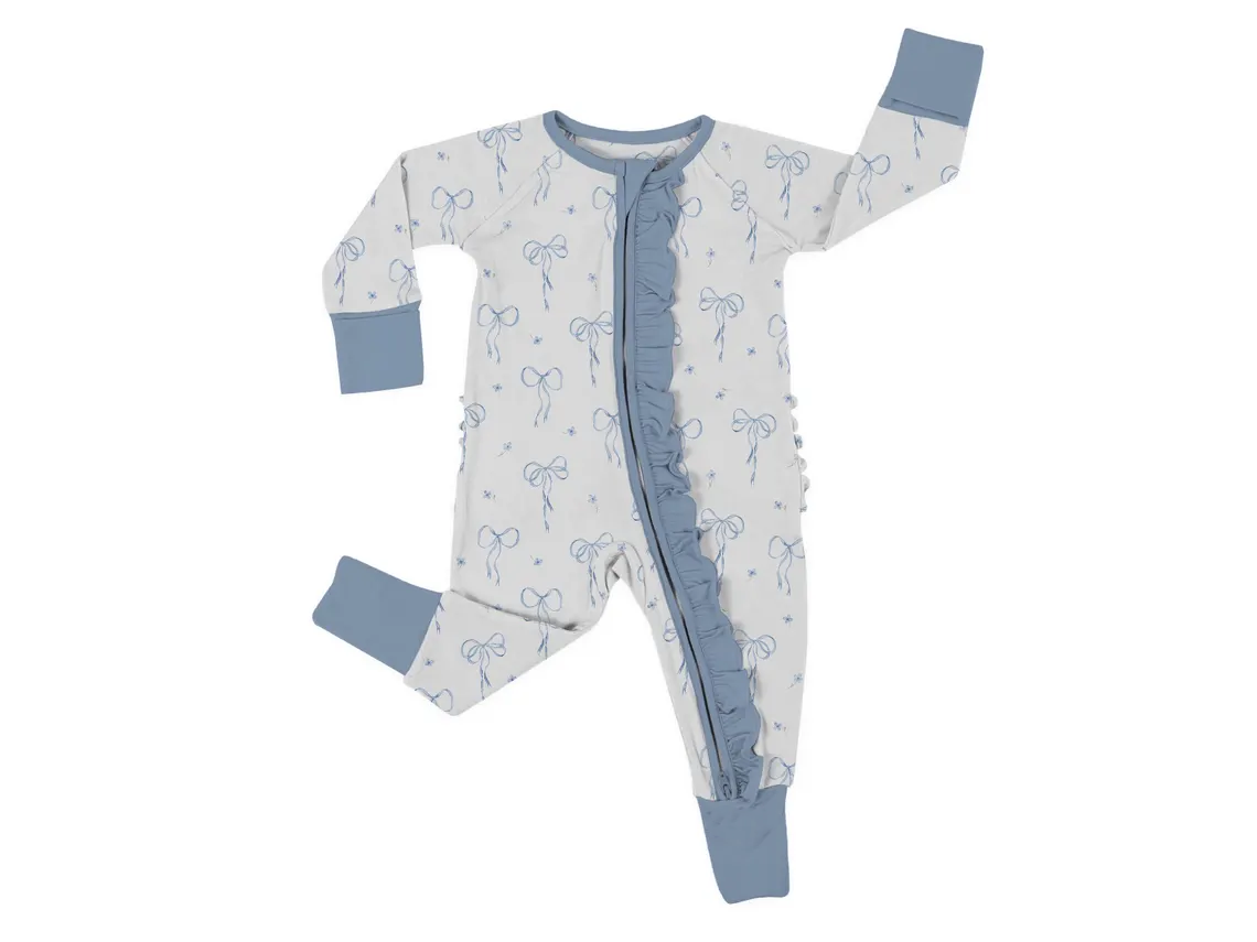(Custom Design Preorder MOQ 20) Gray Bows Print Baby Girls Fall Bamboo Sleeper Zipper Romper