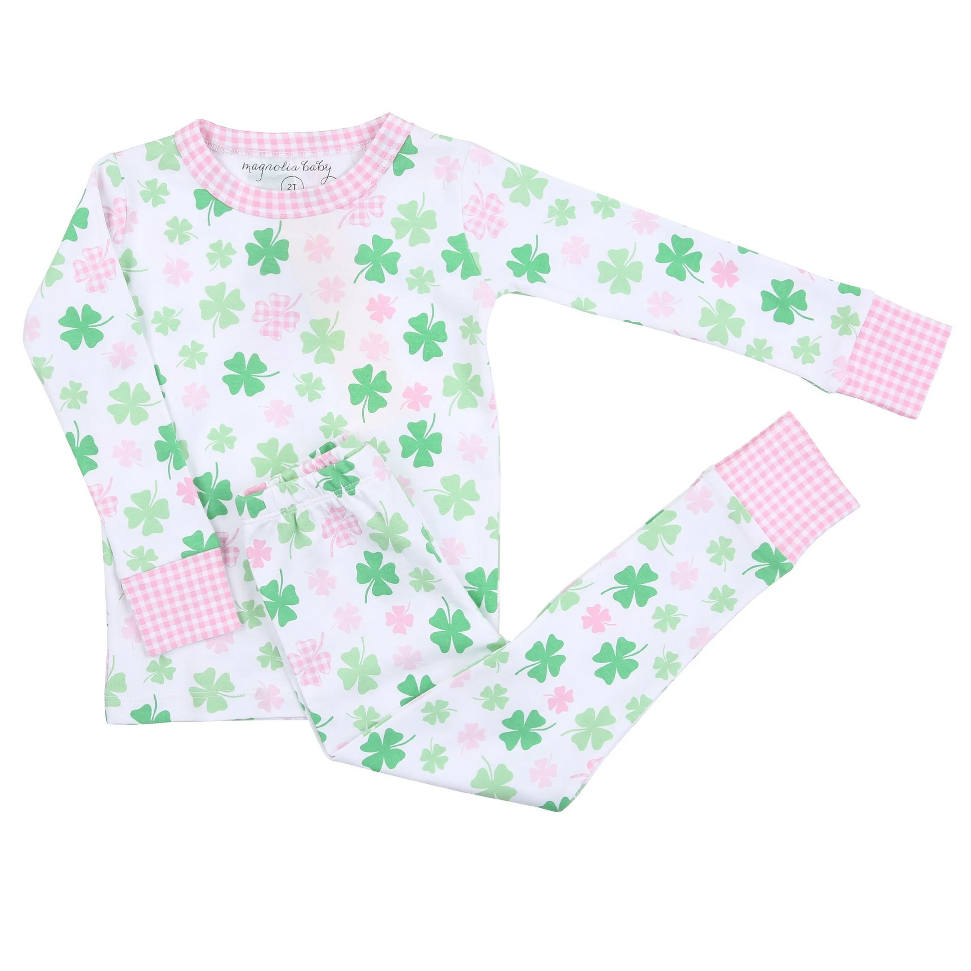 (Custom Design Preorder MOQ 5) Green Quatrefoil Print Girls St. Patrick's Pajamas Clothes Sets
