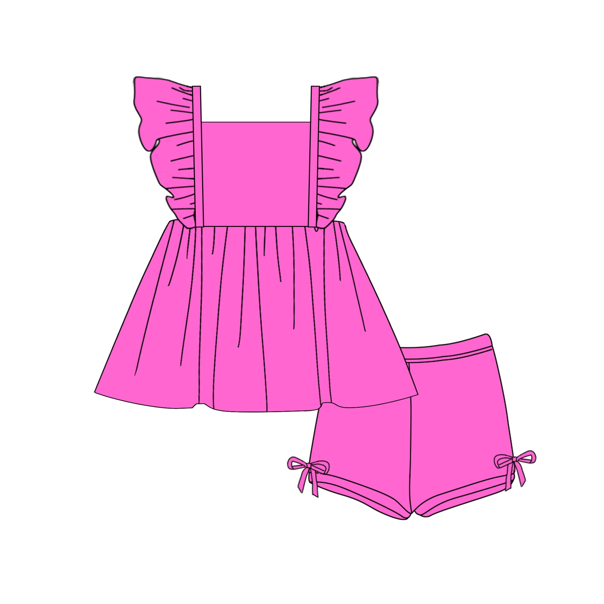(Custom Design Preorder MOQ 5) Hot Pink Tunic Top Shorts Girls Summer Clothes Set