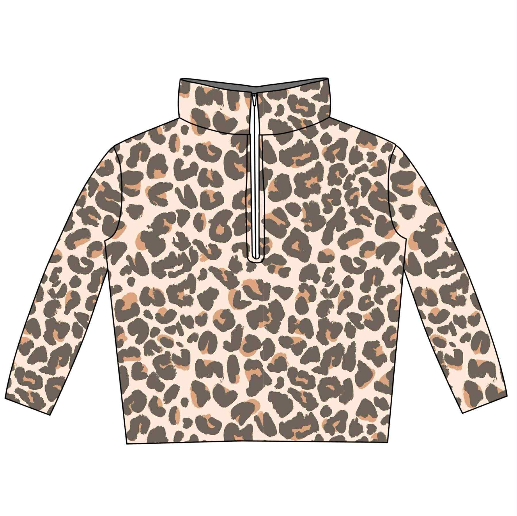 (Custom Design Preorder MOQ 5) Leopard Print Kids Long Sleeve Zipper Pullover Top