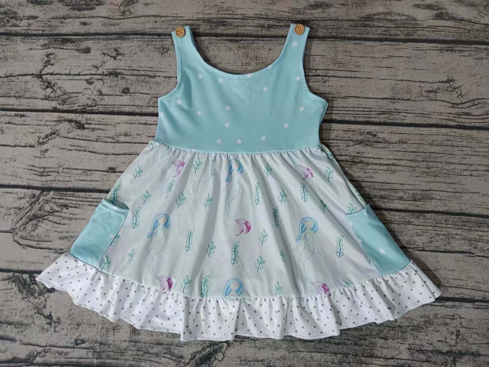 (Custom Design Preorder MOQ 5) Mermaid Print Girls Knee Length Summer Dress