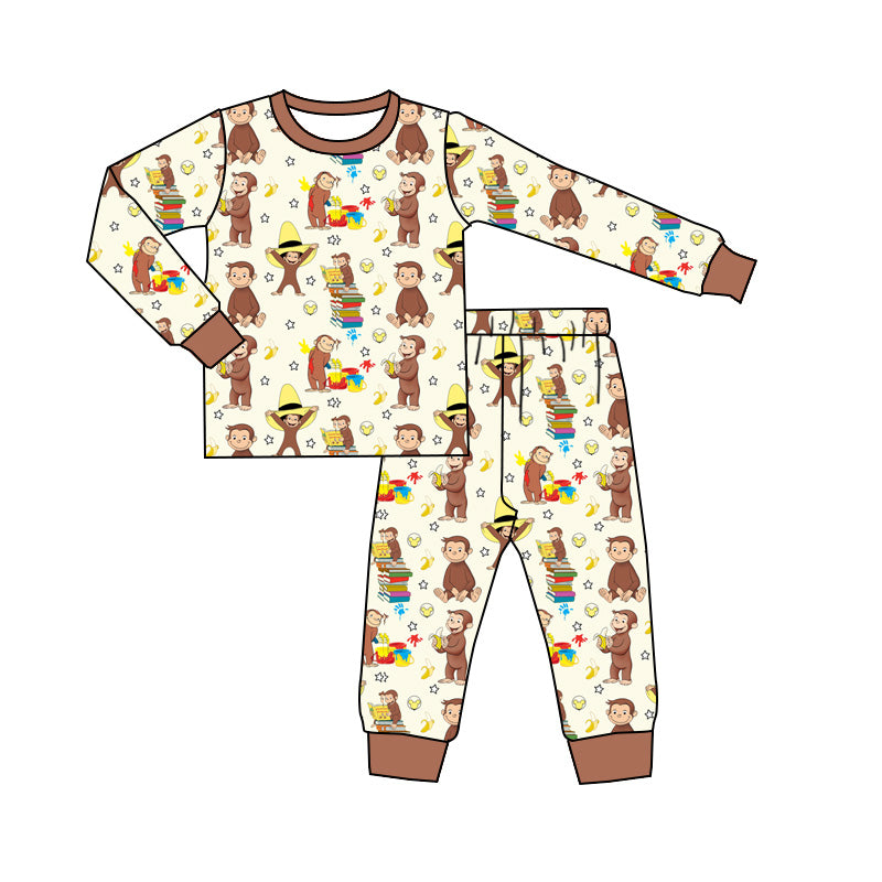 (Custom Design Preorder MOQ 20) Monkey Print Kids Fall Bamboo Pajamas Clothes Set