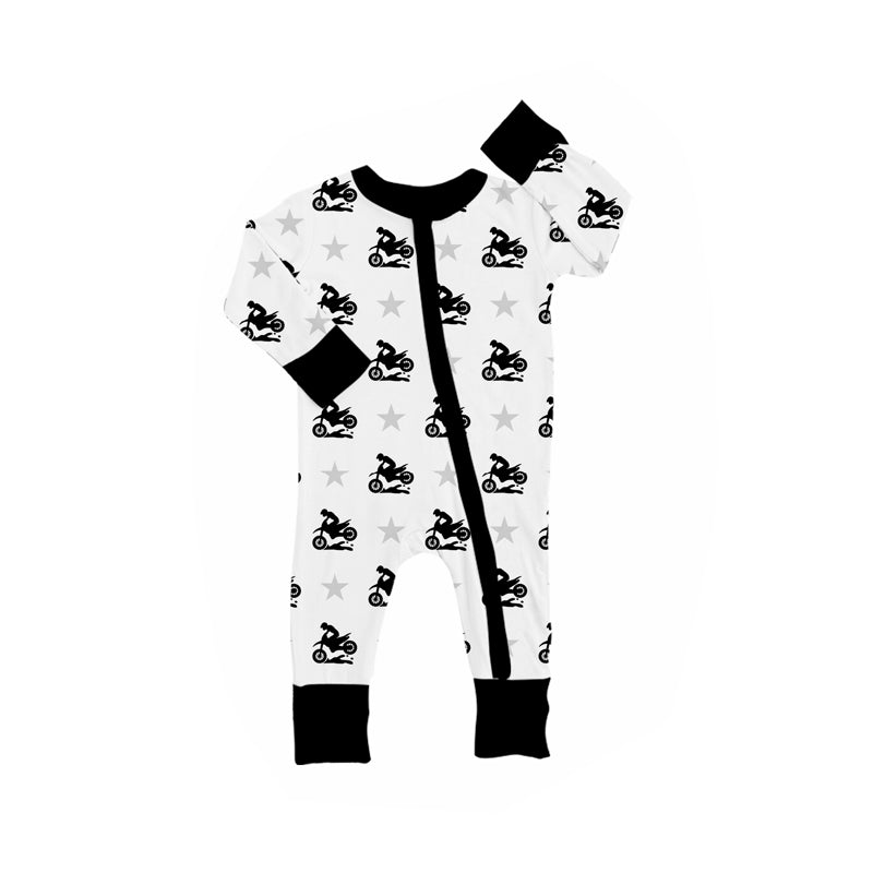 (Custom Design Preorder MOQ 20) Motorcycle Stars Print Baby Long Sleeve Bamboo Sleeper Zipper Romper