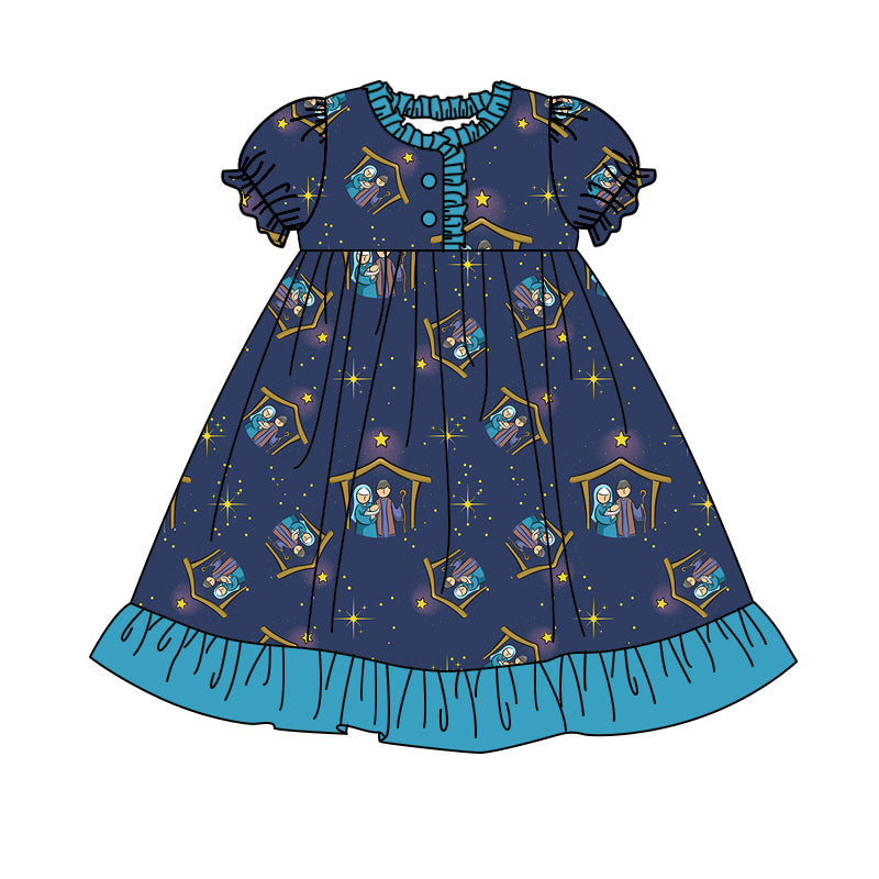 (Custom Design Preorder MOQ 20) Nativity Print Girls Knee Length Pajamas Bamboo Gown Dress