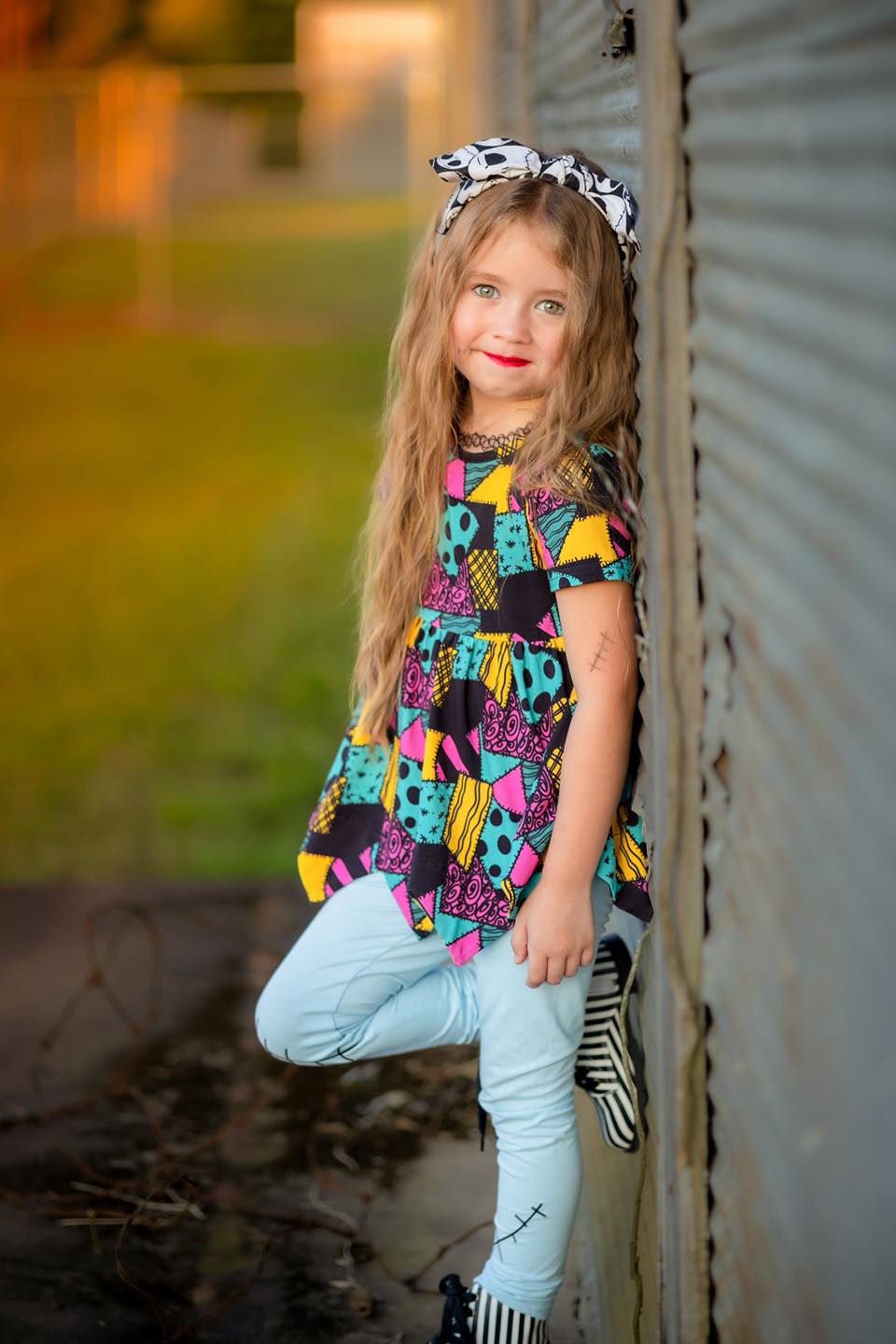 (Custom Design Preorder MOQ 5) Cartoon Movie Patch Tunic Top Blue Pants Girls Halloween Clothes Set