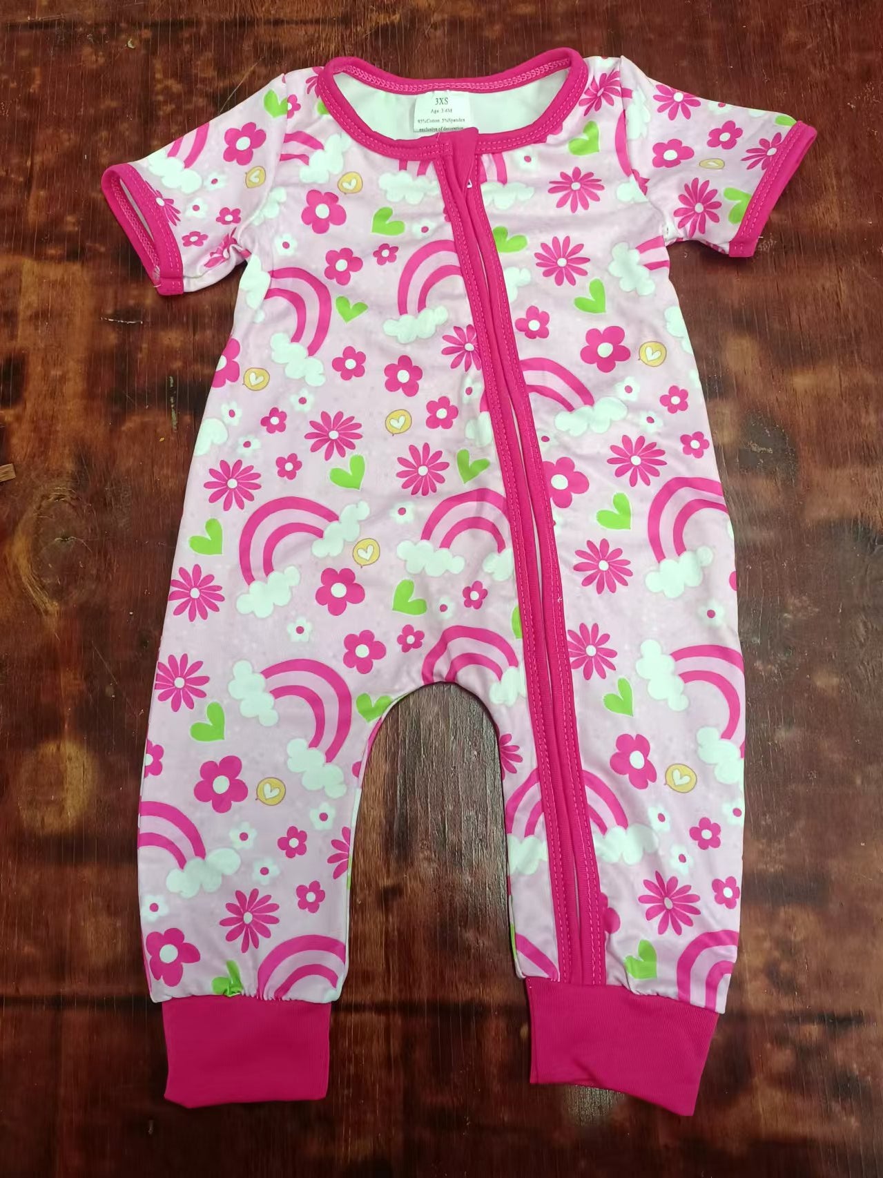 (Custom Design Preorder MOQ 20) Pink Flowers Rainbow Print Baby Girls Bamboo Sleeper Zipper Romper