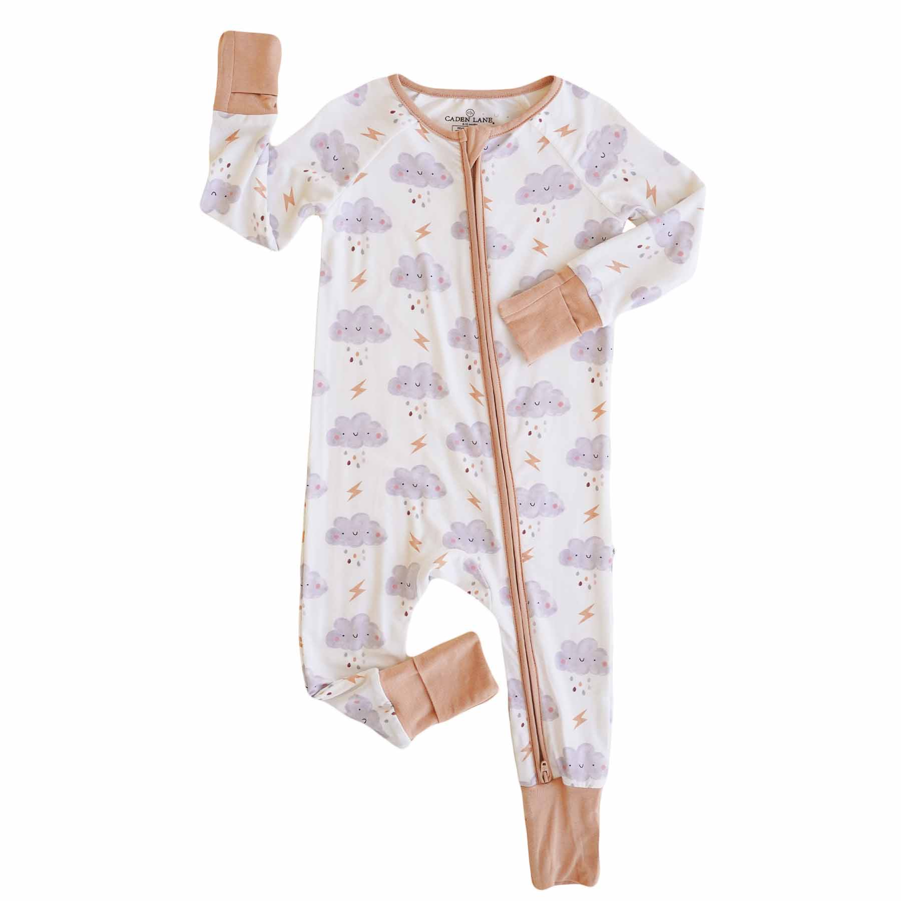 (Custom Design Preorder MOQ 20) Rainning Print Baby Girls Bamboo Fall Sleeper Zipper Romper