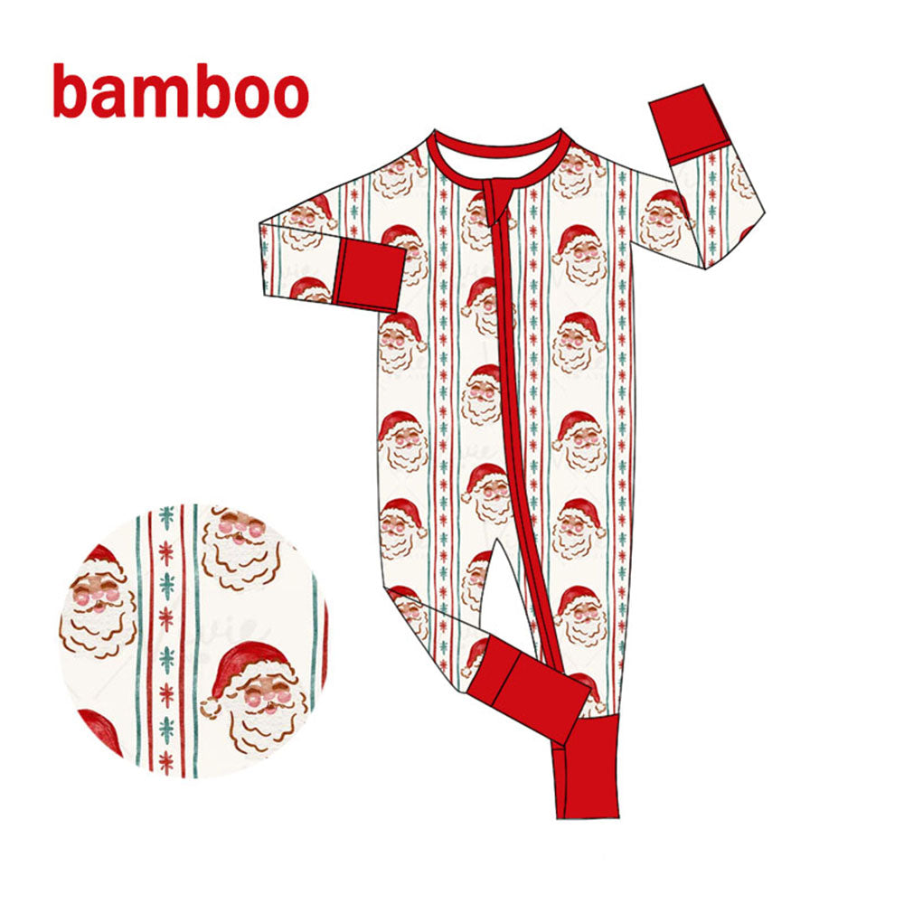 (Custom Design Preorder MOQ 20) Santa Print Baby Girls Christmas Long Sleeve Bamboo Sleeper Zipper Romper