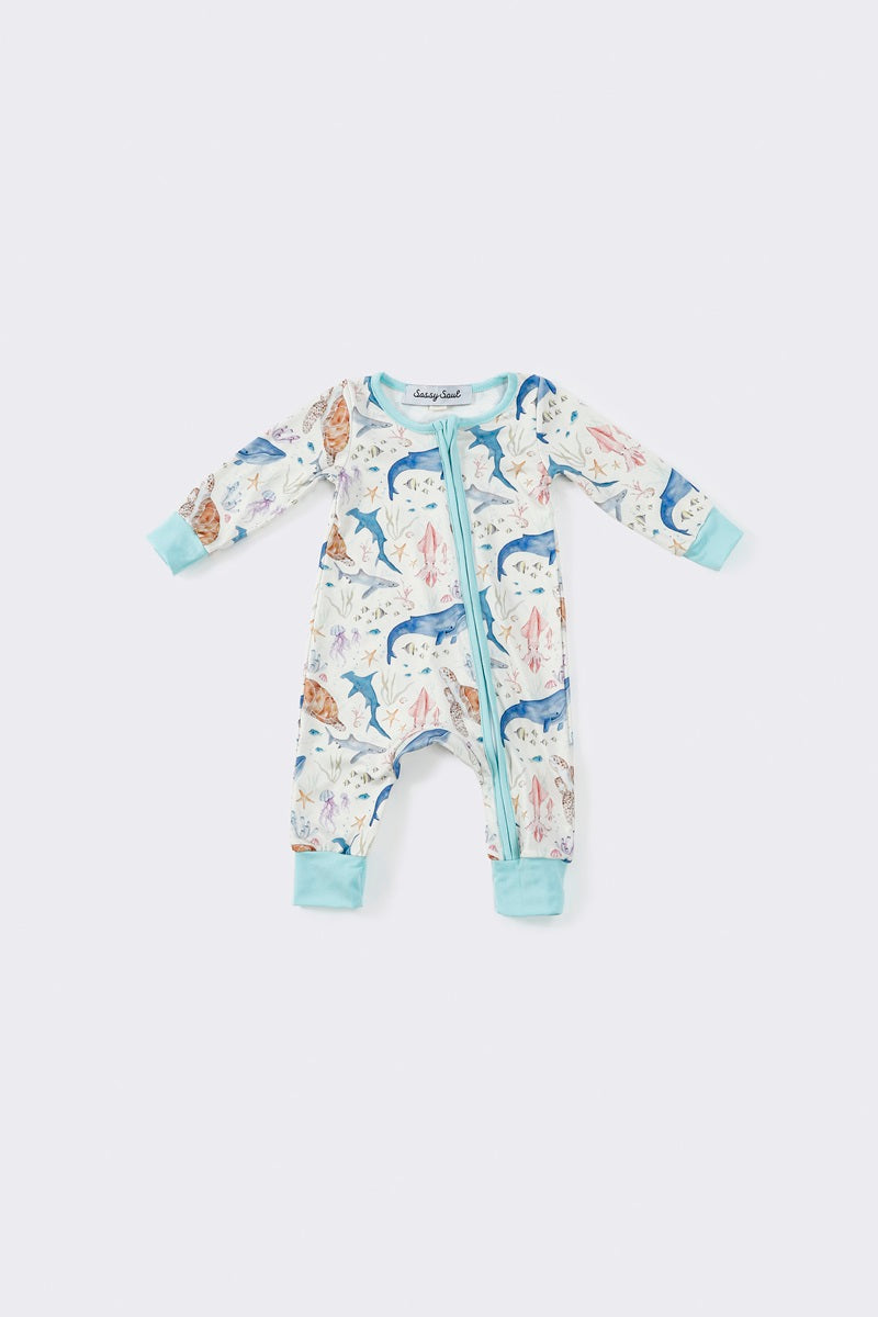 (Custom Design Preorder MOQ 20) Shark Turtle Print Baby Boys Bamboo Sleeper Zipper Romper