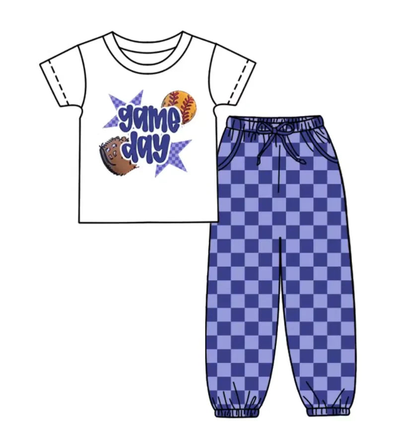 (Custom Design Preorder MOQ 5) Softball Game Day Print Navy Joggers Pants Boys Clothes Set