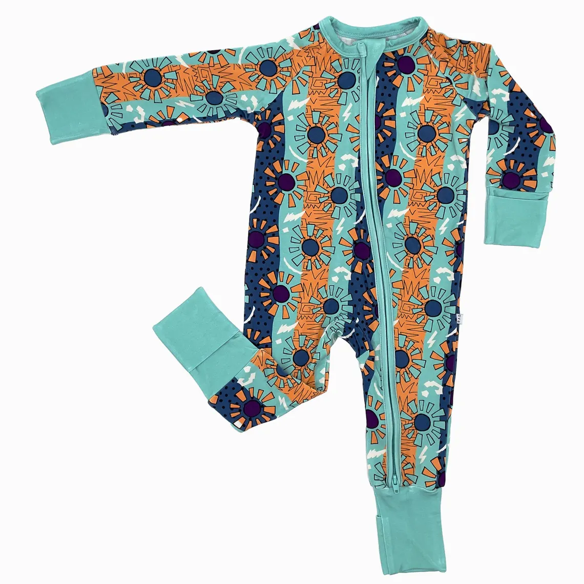 (Custom Design Preorder MOQ 20) Sunshine Print Baby Boys Fall Bamboo Sleeper Zipper Romper