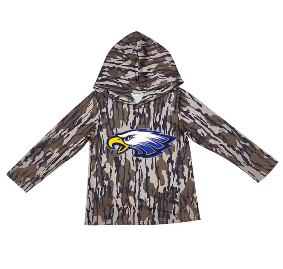(Custom Design Preorder MOQ 5) Team Eagles Camo Print Kids Long Sleeve Hoodie Top