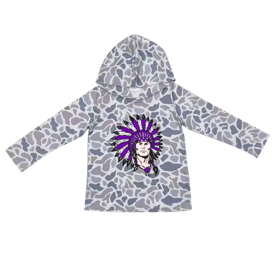 (Custom Design Preorder MOQ 5) Team Groves Grey Camo Print Kids Long Sleeve Hoodie Top