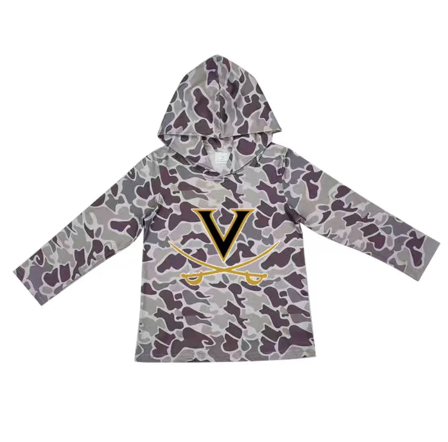 (Custom Design Preorder MOQ 5) Team Vanderbilt Camo Print Kids Long Sleeve Hoodie Top