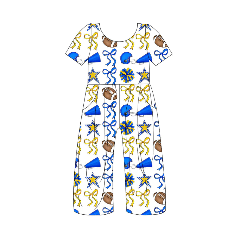 (Custom Design Preorder MOQ 5) Team's Football Cheer Bows Print Girls Summer Jumpsuits