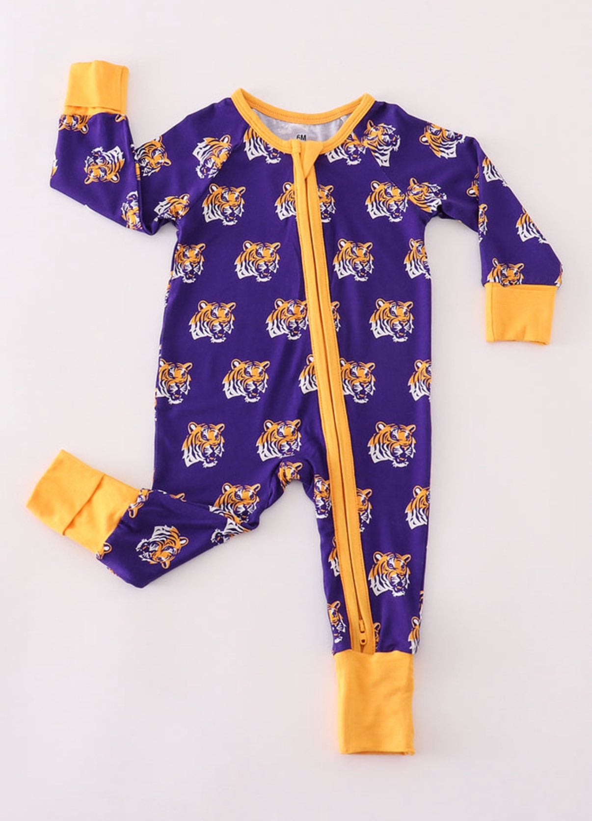 (Custom Design Preorder MOQ 5) Team's LSU Tigers Print Baby Fall Sleeper Zipper Romper