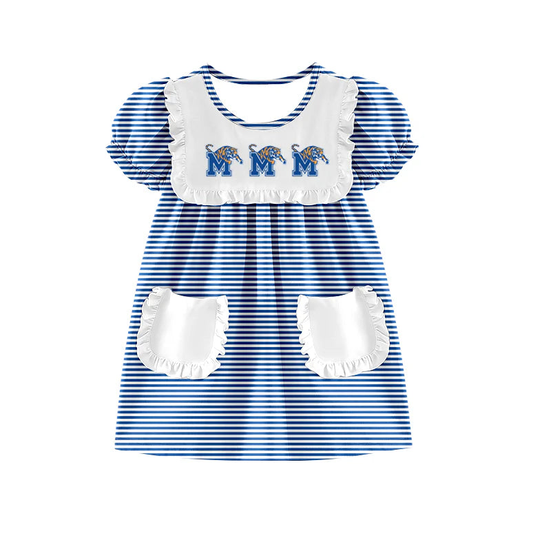 (Custom Design Preorder MOQ 5) Team's Memphis Tigers Stripes Print Pockets Girls Summer Knee Length Dress