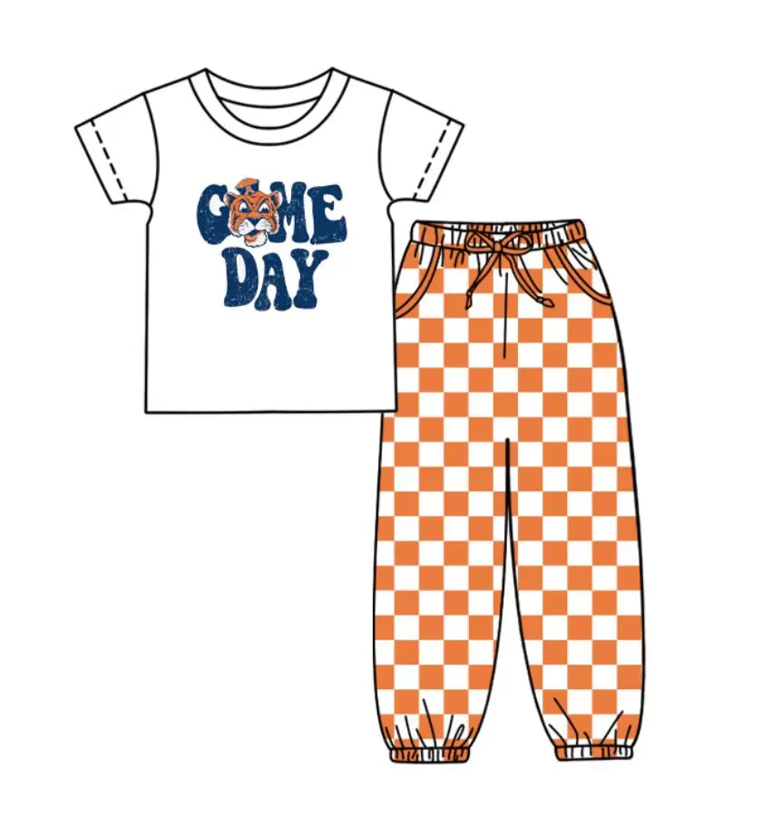 (Custom Design Preorder MOQ 5) Team's Tigers Game Day Print Orange Joggers Pants Boys Clothes Set