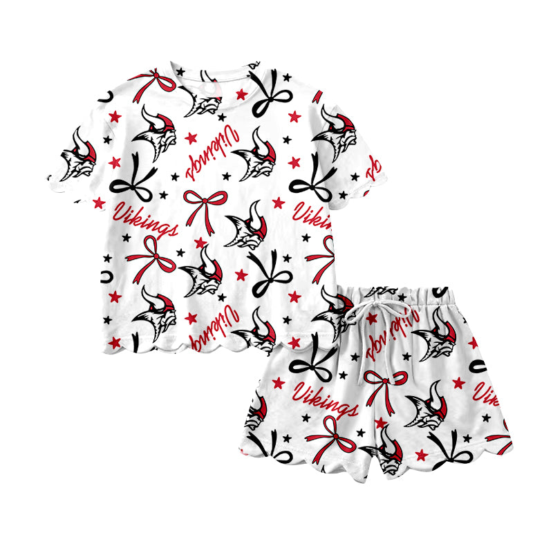 (Custom Design Preorder MOQ 5) Teams Vikings Bows Print Girls Summer Clothes Set