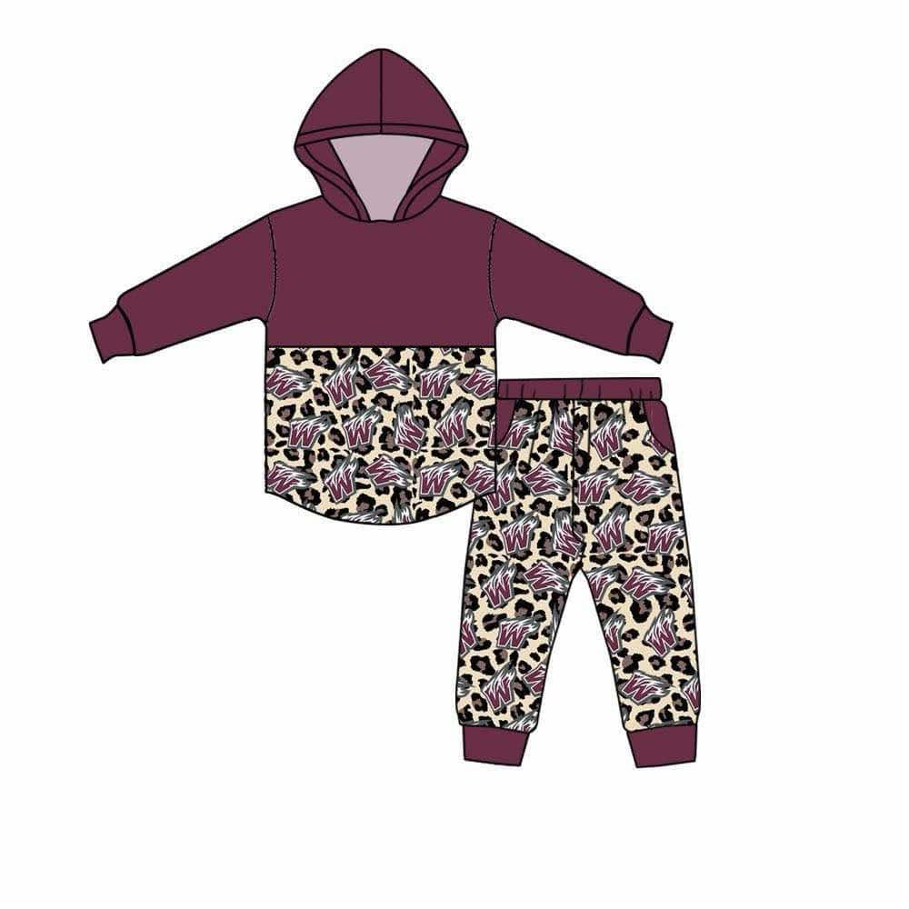 (Custom Design Preorder MOQ 5) Team's W Leopard Print Kids Hoodie Clothes Set