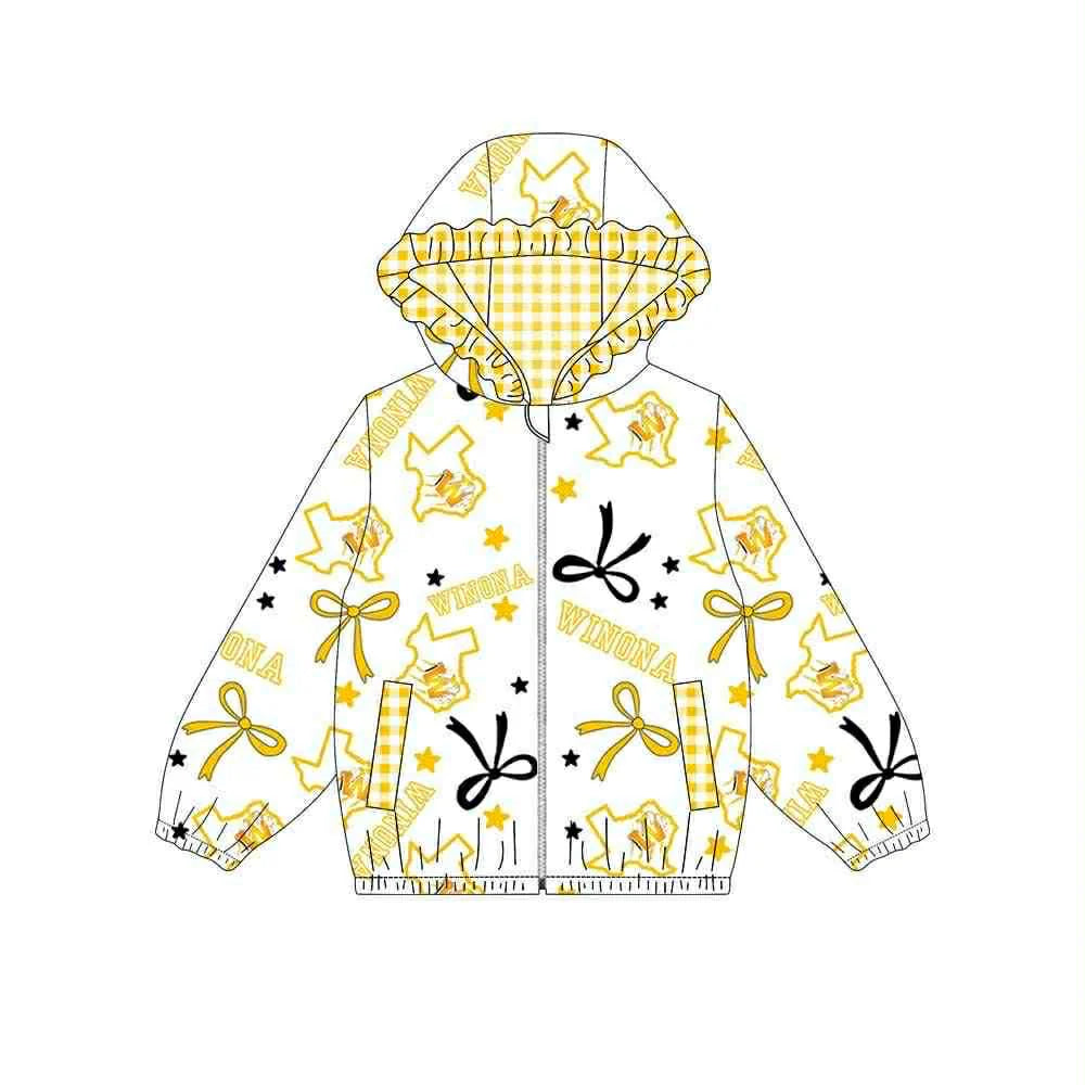 (Custom Design Preorder MOQ 5) Team's WINONA Bows Print Pockets Girls Long Sleeve Zipper Jackets Top
