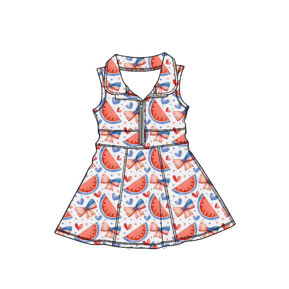 (Custom Design Preorder MOQ 5) Watermelon Bows Hearts Print Zipper Shorts Skirts Girls 4th of July Yoga Dress Sisters Wear