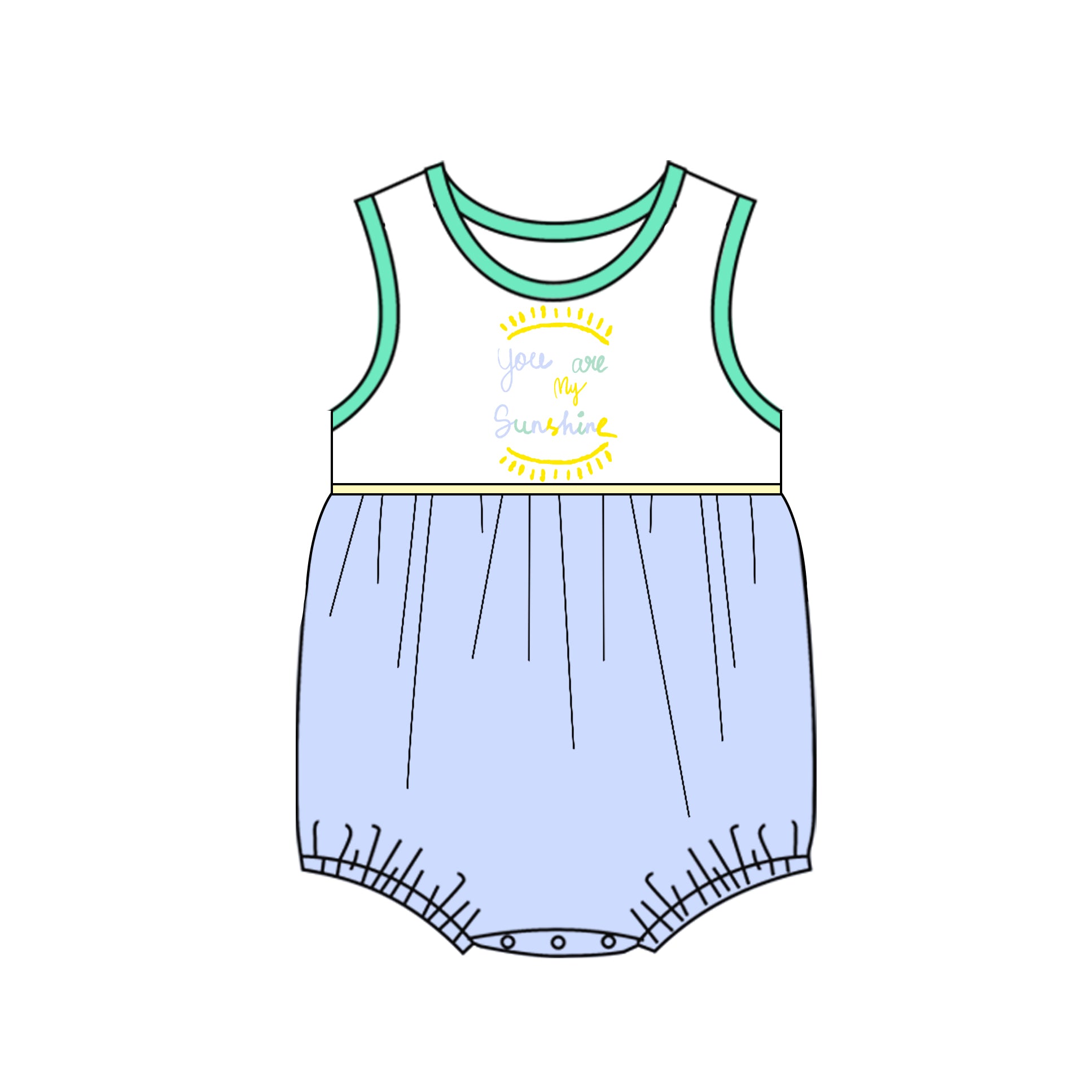 (Custom Design Preorder MOQ 5) you are my sunshine Print Baby Boys Summer Bubble Romper