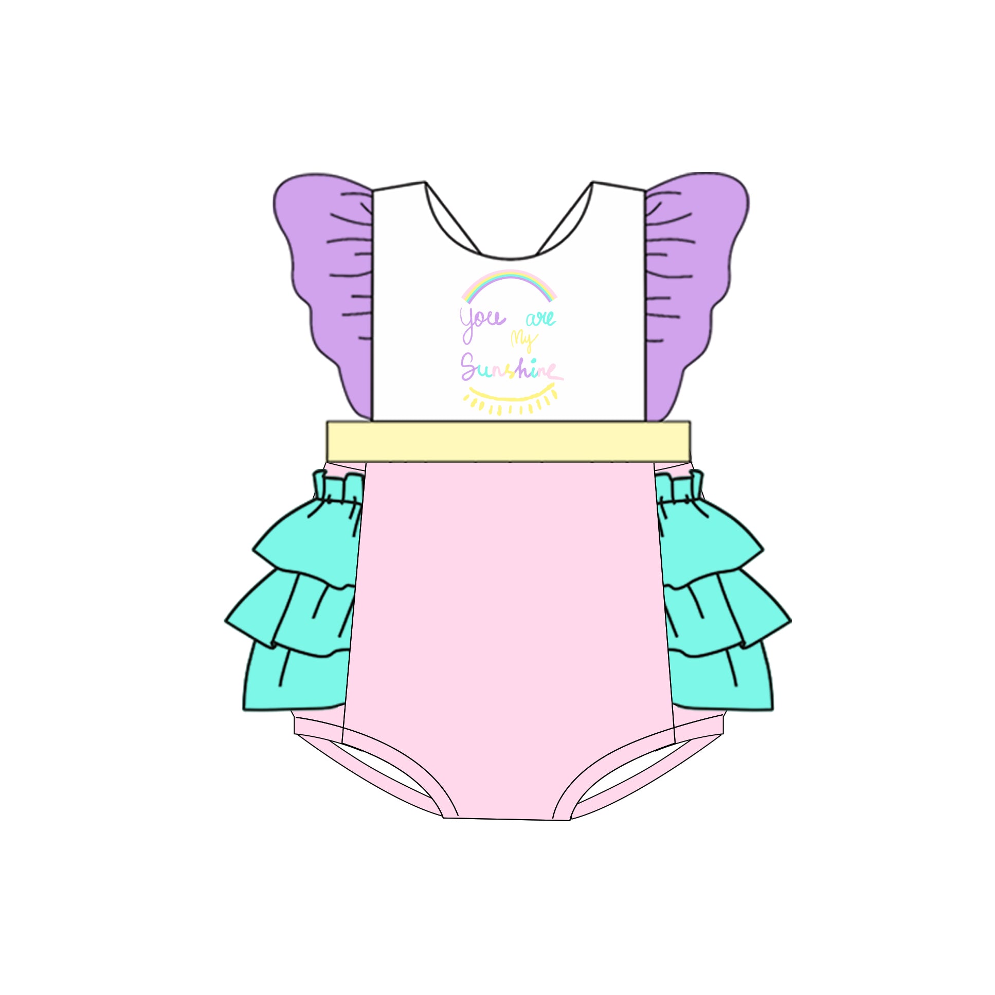 (Custom Design Preorder MOQ 5) you are my sunshine Print Baby Girls Summer Bubble Romper