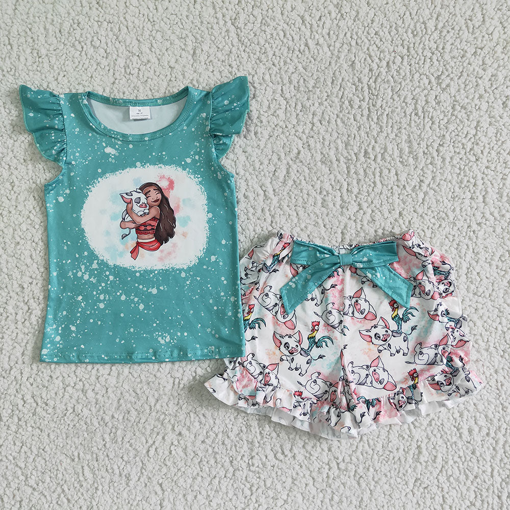 (Promotion)Cute girls bleached pig cartoon print summer outfits GSSO0070