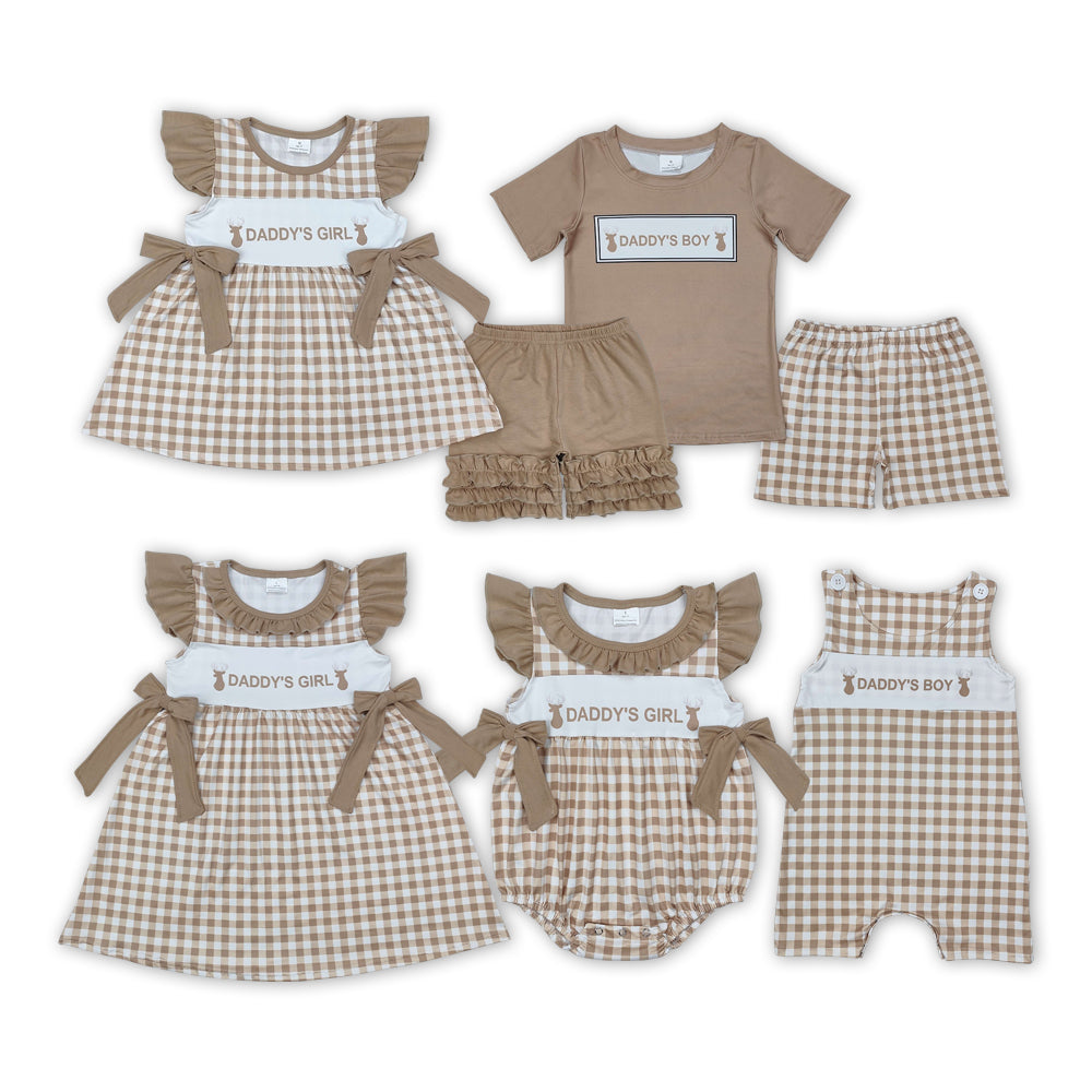 Daddy's Boy & Girl Deer Plaid Print Sibling Summer Matching Clothes