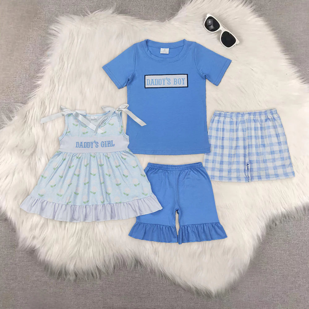 DADDY'S BOY & Girl Embroidery Kids Summer Clothes Set Sibling Wear