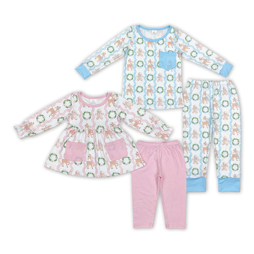 Deer Gingerbread Print Sibling Christmas Matching Clothes