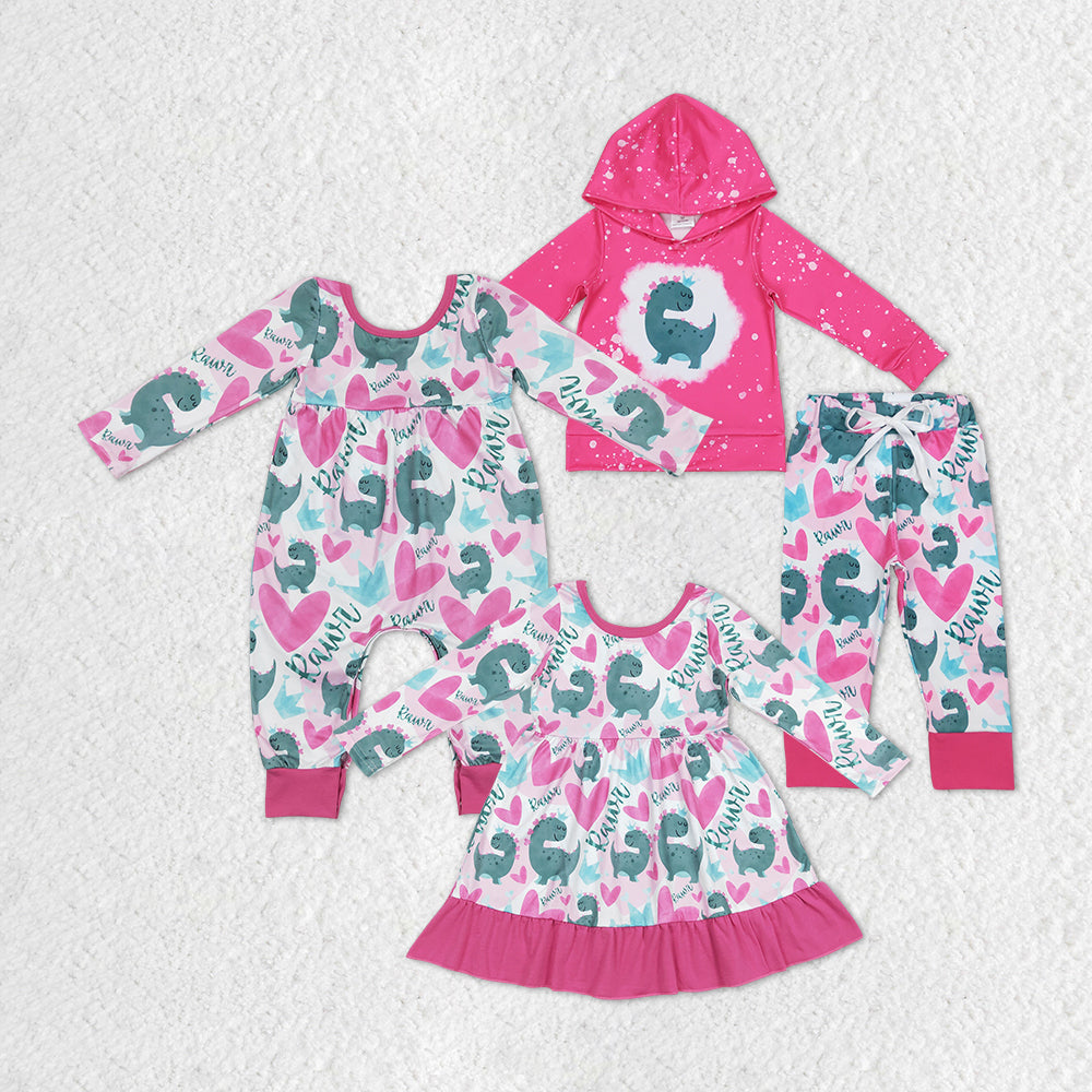 Dinosaur Heart Pink Print Sisters Valentine's Matching Clothes