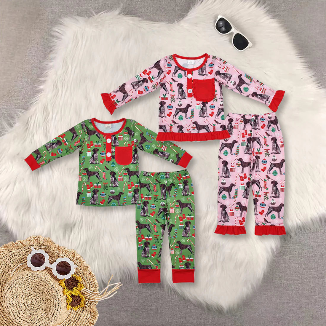 Dog Candy Cane Print Pocket Sibling Christmas Bamboo Pajamas Clothes Set