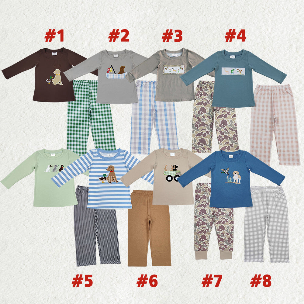 Dog Duck Hunting Embroidery Top Pants Boys Fall Go Hunting Clothes Set Brothers Wear