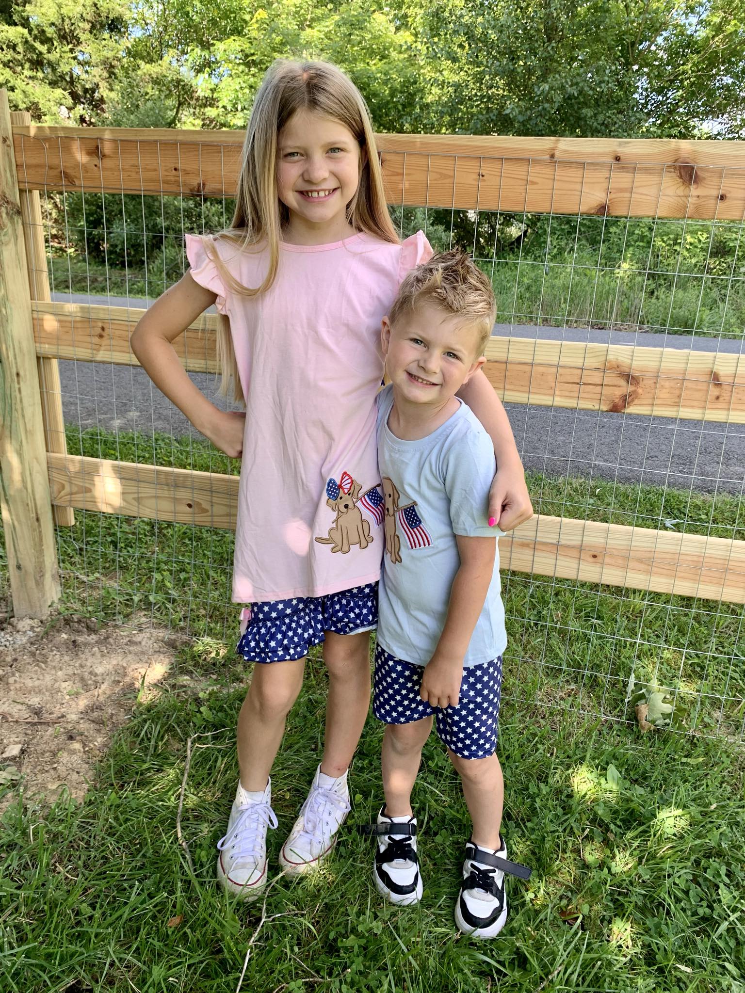 Dog Flag Embroidery Stars Print Sibling 4th of July Matching Clothes