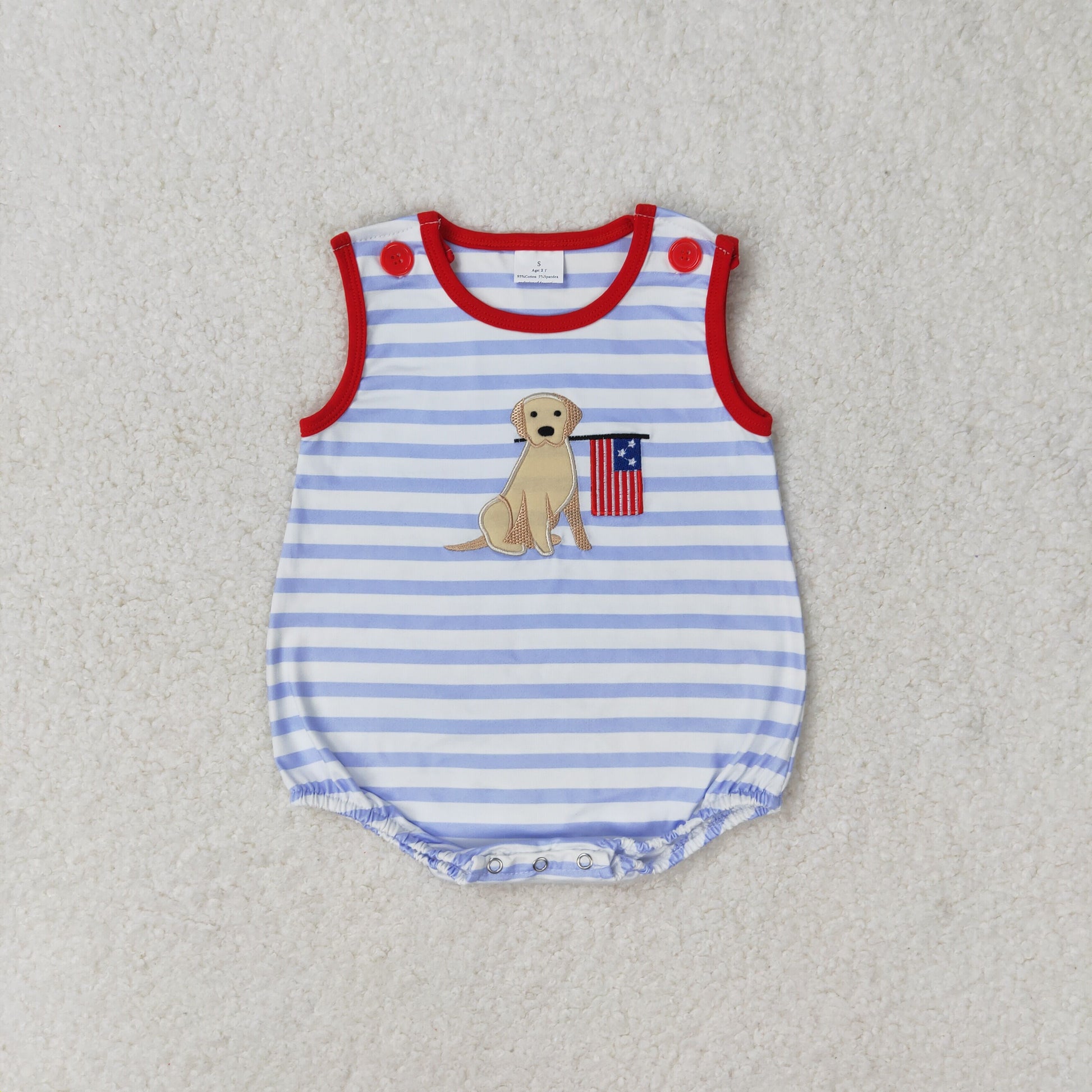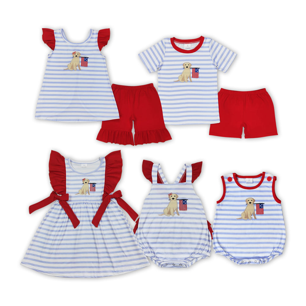 Dog Flag Embroidery Stripes Print Sibling 4th of July Matching Clothes